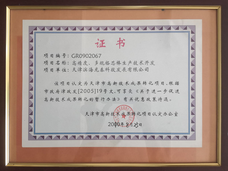 Technical Development Certificate of Mandrel Bar