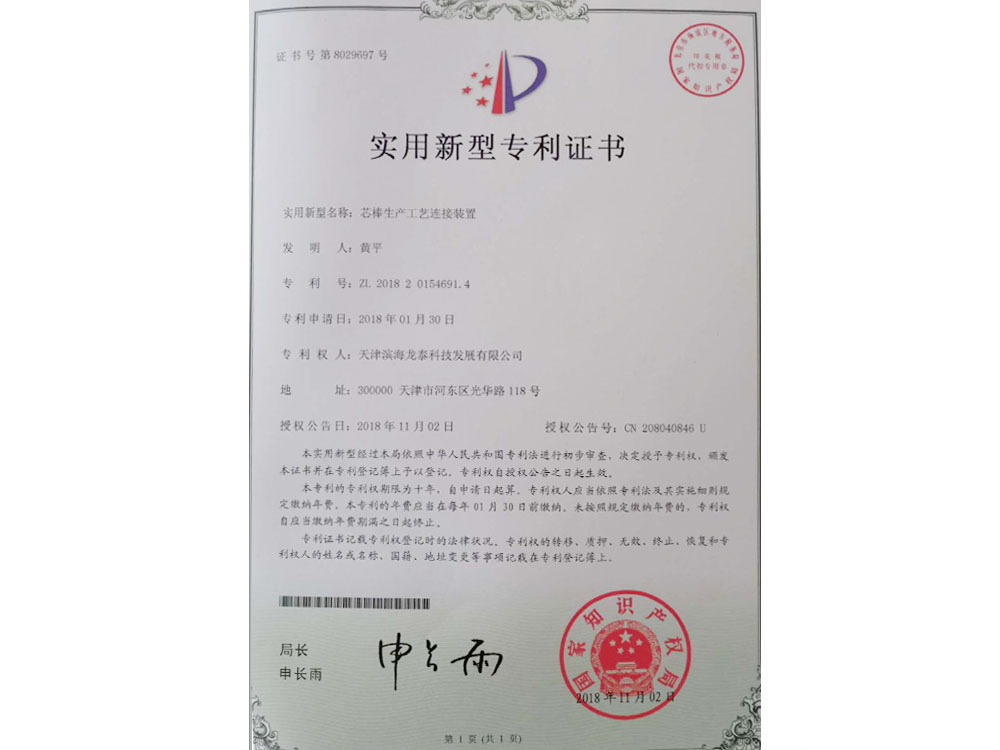 Utility Model Patent – Mandrel Bar Processing Link Gear