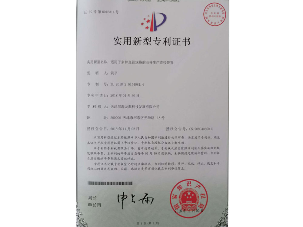 Utility Model Patent – Connecting Equipment for Mandrel Bar