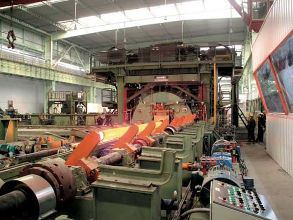 Plug Mill Process, a solid round (billet) is used. It is uniformly heated in the rotary hearth heating furnace and then pierced by a Mannesmann piercer. The pierced billet or hollow shell is rollreduced in outside diameter and wall thickness. The rolled tube simultaneously burnished inside and outside by a reeling machine. The reeled tube is then sized by a sizing mill to the specified dimensions. From this step the tube goes through the straightener. This process completes the hot working of the tube. The tube (referred to as a mother tube) after finishing and inspection, becomes a finished product.
